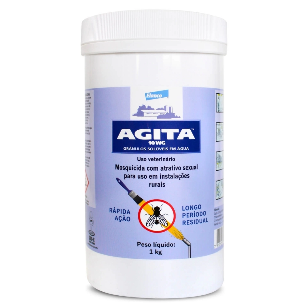 Misturar bem 1 kg de AGITA™ 10 WG em 8 litros de água. Utilizar um pulverizador manual e borrifar de forma localizada, somente nos locais preferidos pelas moscas domésticas. Desta forma, obtém-se diversos pontos de atração e controle de moscas dentro da instalação, sem precisar formar a tradicional nuvem de inseticida, que irrita os animais. Para isso, regular o bico do pulverizador para ponto de chuva fina. A quantidade de uma embalagem de 1 kg é suficiente para proteger uma área coberta de 200 m2 ou 500 m2 de superfície de parede/teto. Efeito residual: até 4 a 6 semanas.