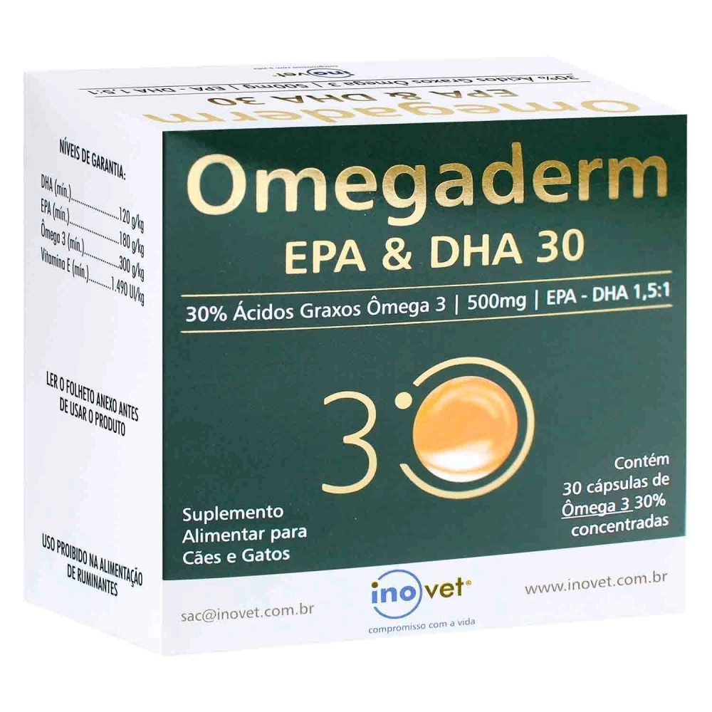 Omegaderm Suplemento EPA & DHA 30% Cães e Gatos 500mg com 30 Capsulas Inovet