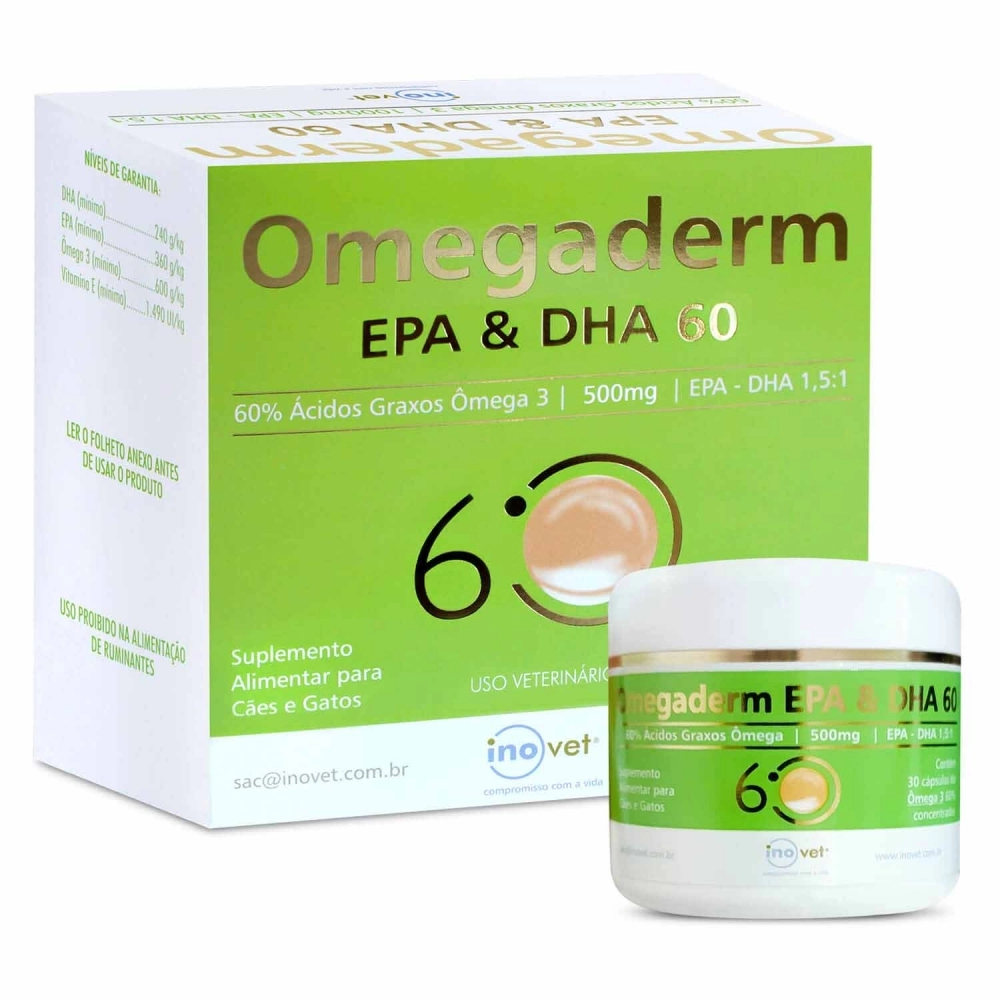 Omegaderm Suplemento EPA & DHA 60% 500mg Com 30 Capsulas Inovet