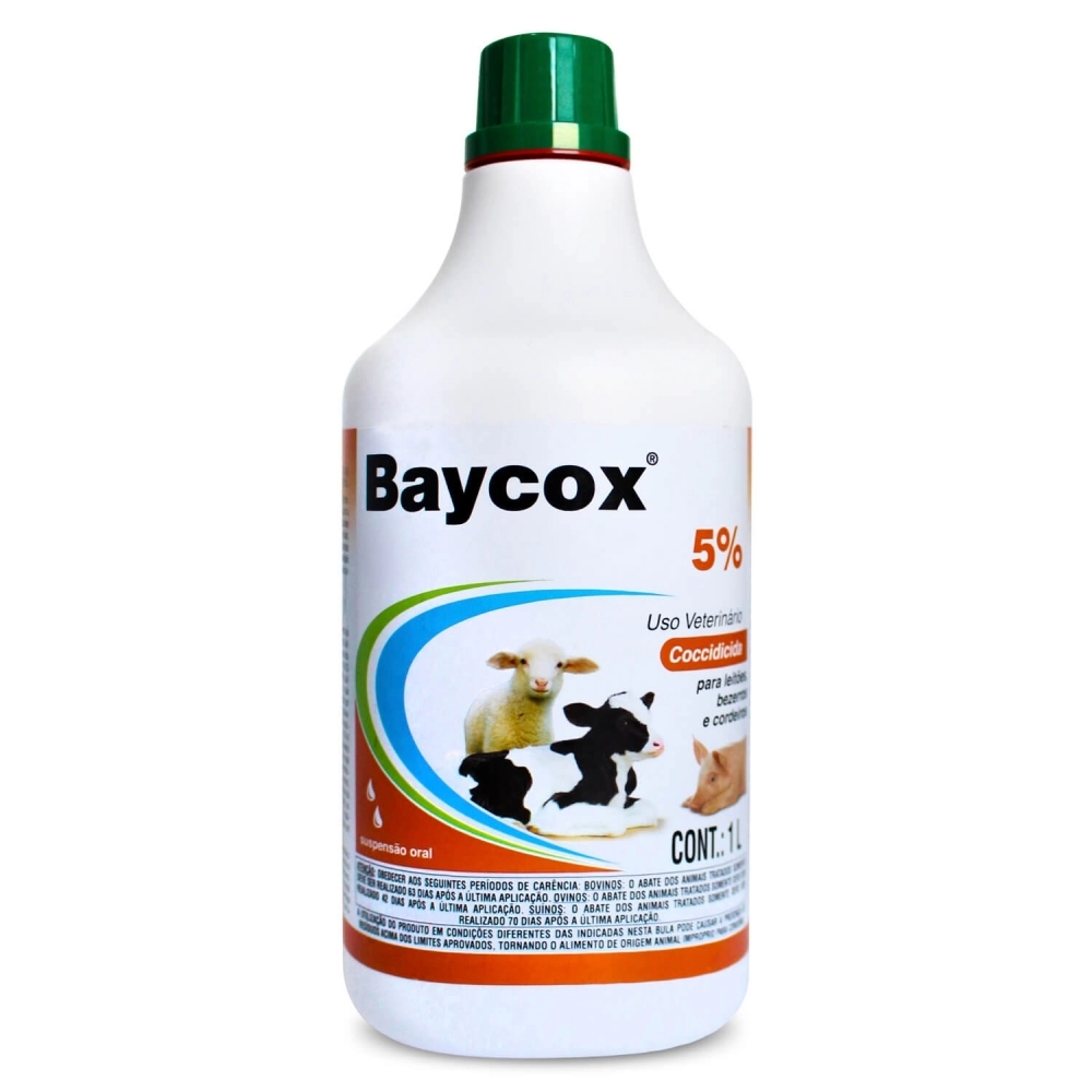 Baycox 5% é especialmente indicado para a metafilaxia e tratamento da coccidiose em leitões, causada por Isospora suis, o principal patógeno associado com a diarreia em leitões entre 5 e 30 dias de idade; para metafilaxia e tratamento da coccidiose em bezerros e cordeiros, causada por Eimeria spp., e principalmente por Eimeria bovis, Eimeria alabamensis e Eimeria zuernii, importantes patógenos associados com a diarreia em bezerros, especialmente a diarreia negra, e Eimeria crandallis e Eimeria ovinoidalis associadas à diarreia em cordeiros. Baycox 5% é compatível com a administração de antibióticos.
