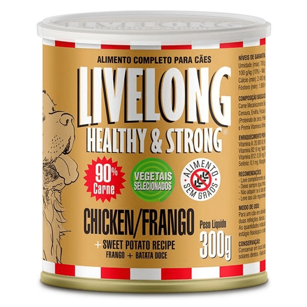 Livelong é um gesto de amor pela saúde do seu cão, as receitas de Livelong são para todas as raças e fases da vida dos pets. Cachorros idosos, obesos ou convalescentes se beneficiam enormemente das receitas de Livelong, pois além de ser um alimento úmido de fácil deglutição pelos pets, possui baixo nível de carboidratos simples, o que evita picos glicêmicos e é de suma importância para cães diabéticos ou propensos a obesidade.
