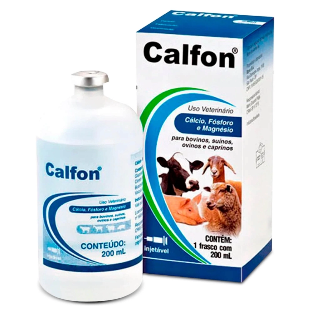 Calfon é um tônico, restaurador orgânico e antitóxico injetável à base de cálcio, magnésio e butafosfana (fósforo orgânico), indicado para equinos, bovinos, ovinos, caprinos e suínos.