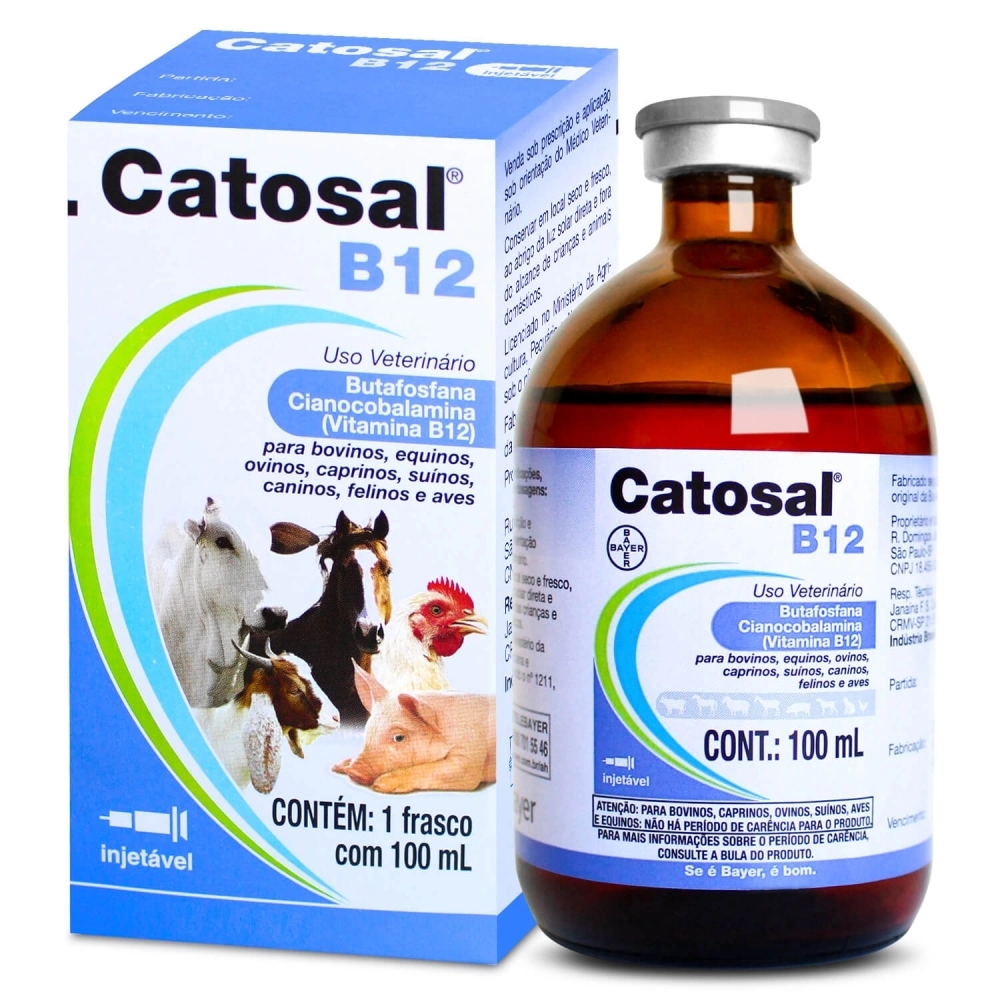Catosal B12 é uma solução injetável de fósforo orgânico (butafosfana) e vitamina B12 que estimula os processos metabólicos e melhora os índices produtivos e reprodutivos dos animais, recuperando animais debilitados e prevenindo doenças metabólicas.