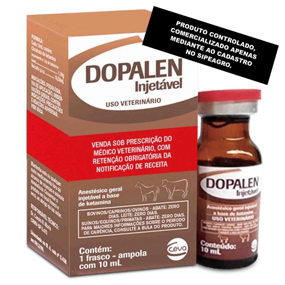 Anestésico geral para uso em bovinos, equinos, ovinos, caprinos e suínos, Dopalen é indicado particularmente nas cirurgias de curta duração e na contenção dos animais.