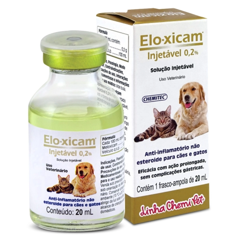 ATACADO>CHEMITEC>Elo-Xicam Injetável 0,2% Anti-Inflamatório Para Cães E Gatos 20ml Chemitec