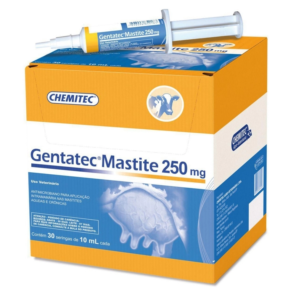 ATACADO>CHEMITEC>Gentatec Mastite Antibiótico 250mg Antimicrobiano Seringa 10ml Chemitec
