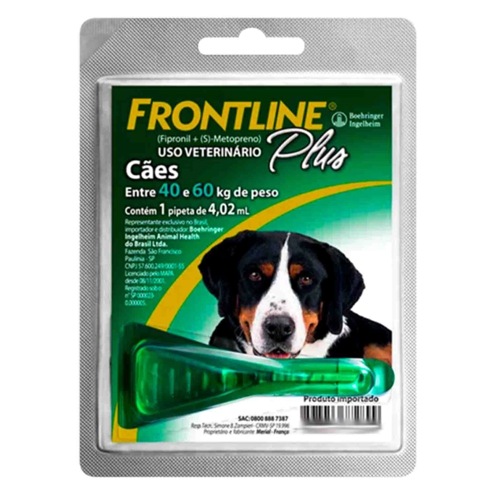 O Frontline Plus é indicado para o tratamento de cães (adultos e filhotes) para o controle de infestações por pulgas, carrapatos e piolhos mastigadores. Auxilia no controle da sarna sarcóptica em cães. Evita o desenvolvimento dos ovos, larvas e pupas no ambiente, provenientes de pulgas adultas, devido a ação do S-metopreno.