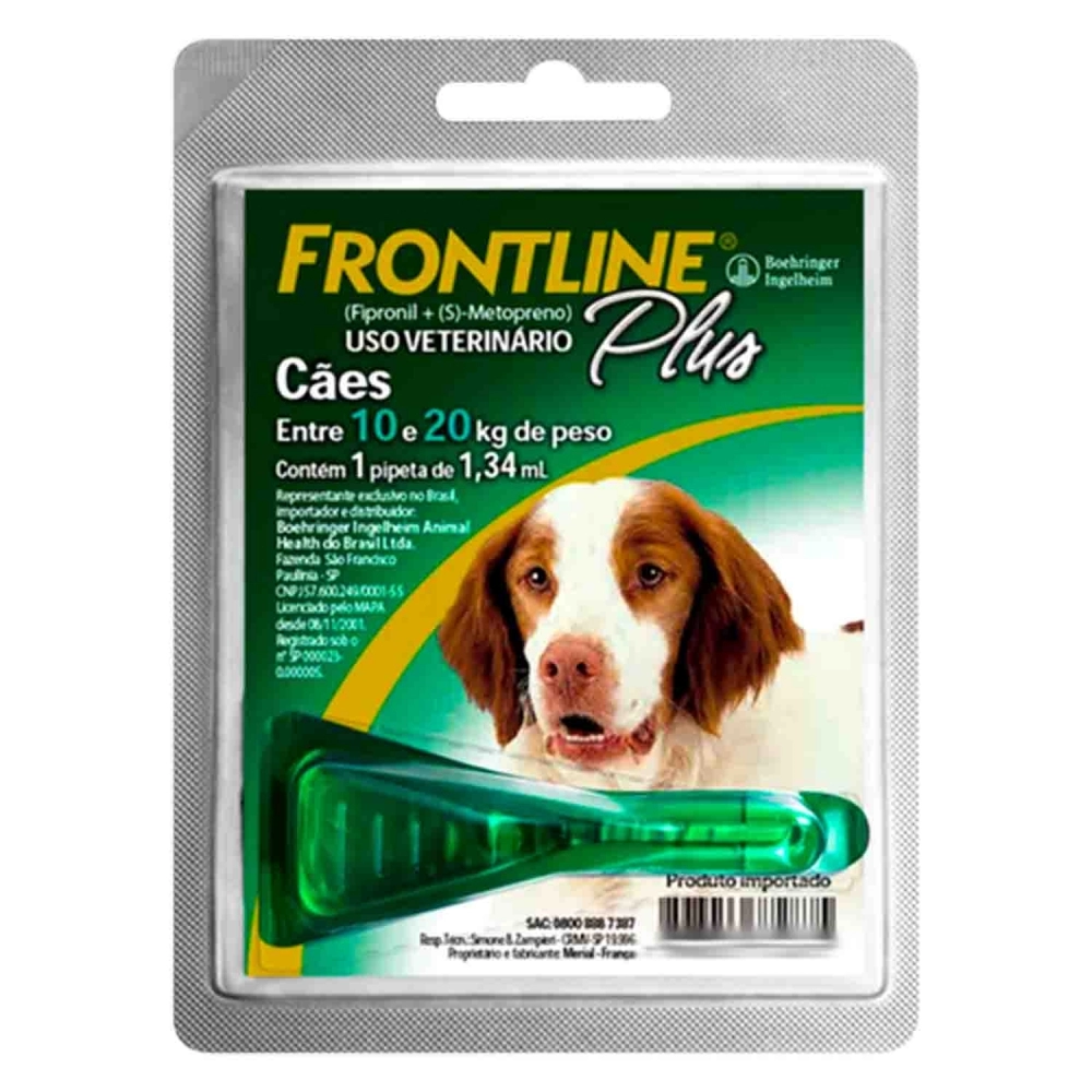 O Frontline Plus é indicado para o tratamento de cães (adultos e filhotes) para o controle de infestações por pulgas, carrapatos e piolhos mastigadores. Auxilia no controle da sarna sarcóptica em cães. Evita o desenvolvimento dos ovos, larvas e pupas no ambiente, provenientes de pulgas adultas, devido a ação do S-metopreno.