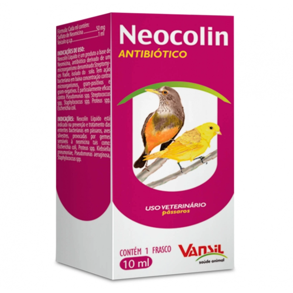 É um produto a base de Neomicina, antibiótico derivado de um microrganismo denominado Streptomyces, fradie, isolado ao solo. Tem ação bacteriana em baixa concentração contra microrganismos Gram-positivos e Gram-negativos. É particularmente eficaz contra Pseudomonas spp, Streptococcus spp, Staphylococcus spp, Proteus spp, Escherichia coli. Está indicado na prevenção e tratamento das enterites bacterianas em pássaros, aves silvestres, provocadas por germes sensíveis à neomicina tais como: Escherichia coli, Proteus spp, Klebsiella pneumoniae, Pseudomonas aeruginosa, Staphylococcus spp.