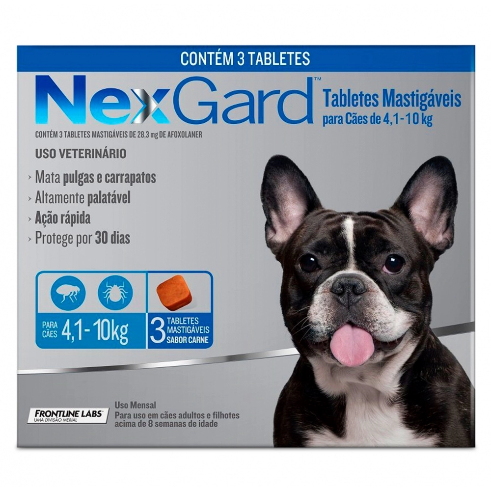 O Nexgard é referência no tratamento contra pulgas e carrapatos, comprovadamente seguro para cães de qualquer raça e conta com uma linha completa para atender diferentes portes e pesos. Pode ser administrado em cães adultos e filhotes a partir de oito semanas de vida e pesando acima de 2kg. Nexgard tem um rápido início de ação e atinge 100% de eficácia em 8 horas para pulgas, e funciona por 30 dias. Para manter seu cão livre de pulgas e carrapatos, faça o tratamento mensal.