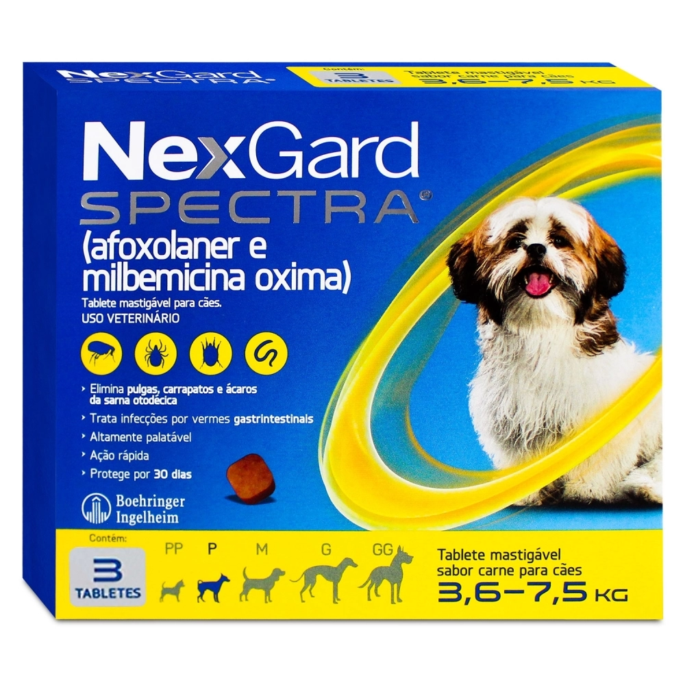 NexGard Spectra® é administrado pela via oral, uma vez ao mês, na dosagem
