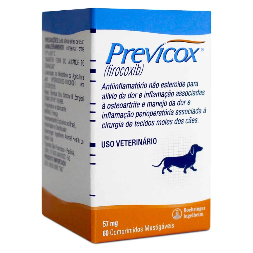 1 cp de Previcox 57 mg para cada 10 kg de peso, uma vez ao dia