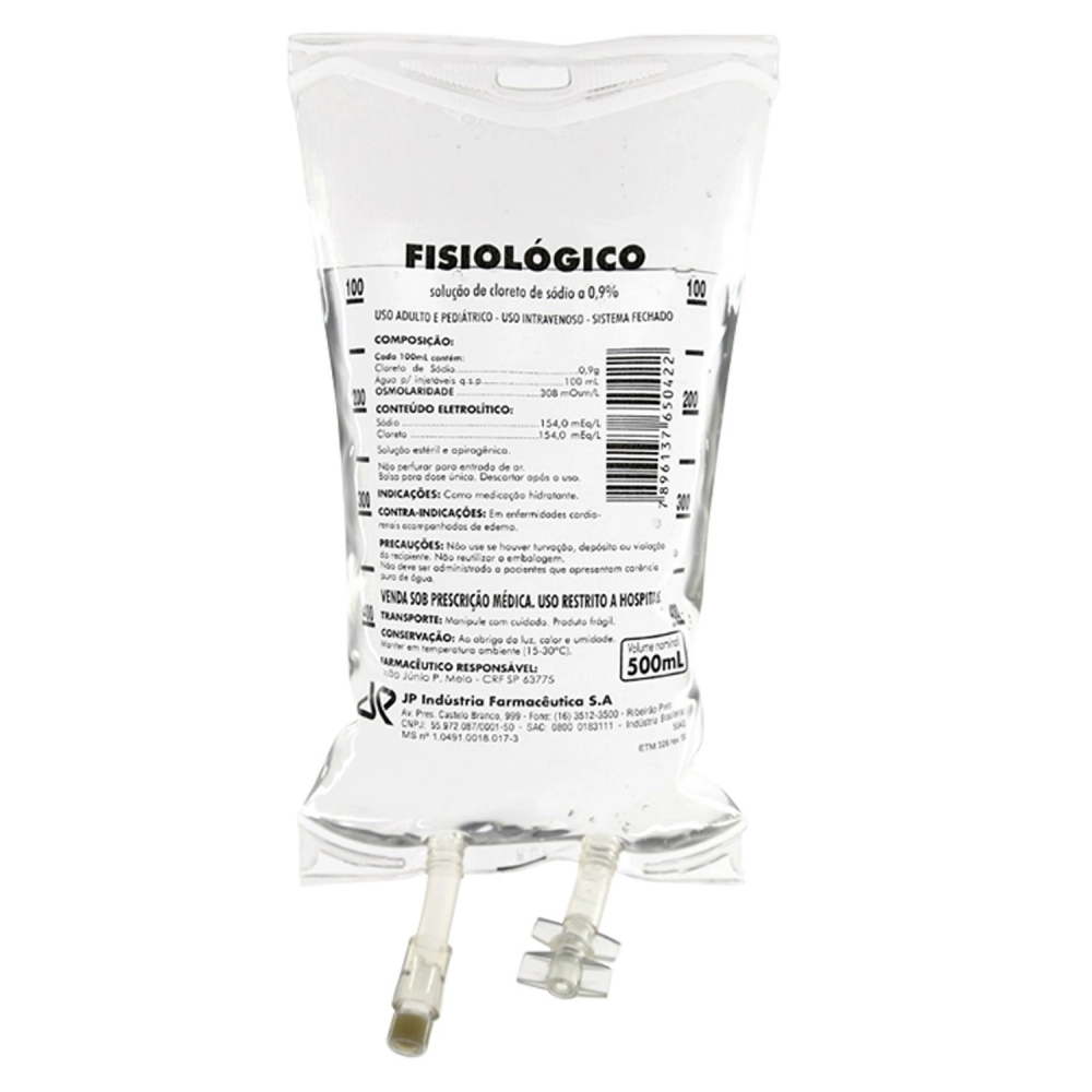 LINHA HOSPITALAR>SOROS>Bolsa De Soro Fisiológico Injetável 0,9% Com 500ml JP