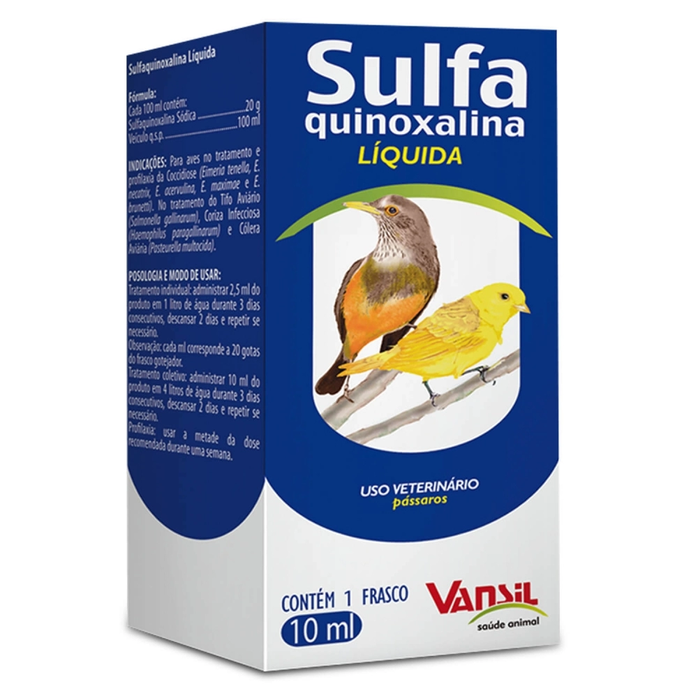 Sulfaquinoxalina Líquida é um poderoso antibiótico a base de sulfaquinoxalina. Por ser uma sulfa de baixa absorção, ela é eliminadas completamente nas fezes, sendo assim um medicamento de escolha para o tratamento de infecções do sistema gastrointestinal com eficiência e segurança.