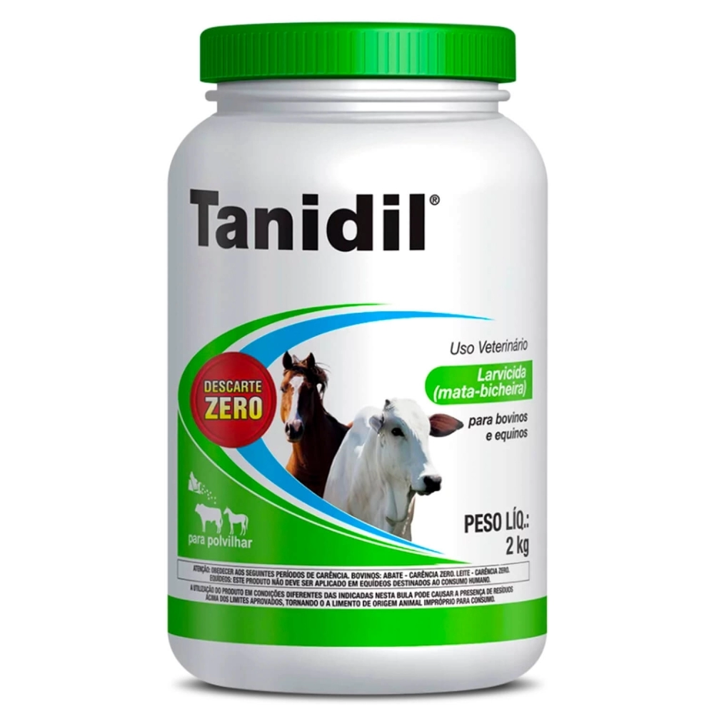 Tanidil protege escoriações, feridas de castração e descorna, feridas cirúrgicas e de decúbito, feridas de esquírolas, pisaduras e o umbigo dos recém-nascidos contra os insetos e suas larvas. Tanidil também é indicado contra o carrapato da orelha dos equinos, Anocentor nitens.