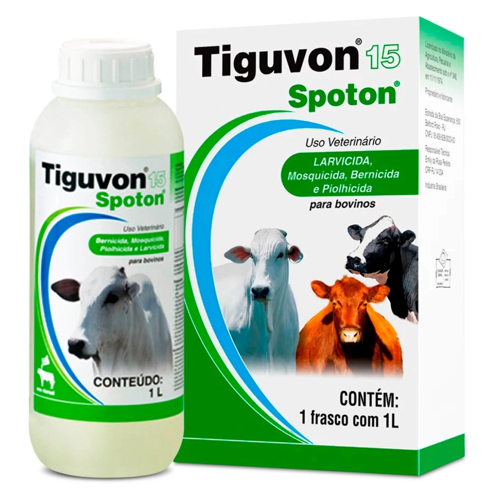 Tiguvon 15 Spot-on é um bernicida, mosquicida, piolhicida e larvicida sistêmico pronto para uso, especialmente indicado para grandes rebanhos. É rapidamente absorvido pela pele, distribuindo-se por meio da corrente sanguínea por todo o corpo do animal, eliminando bernes, moscas, piolhos e bicheiras.