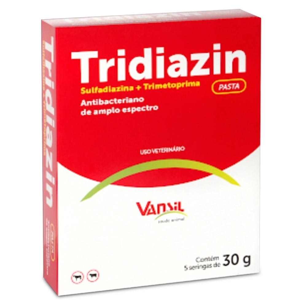 Tridiazin pasta está indicado no tratamento das doenças que acometem equinos e bezerros causadas pelos agentes Gram-positivos e Gram-negativos sensíveis à Sulfadiazina e Trimetoprim, tais como: Klebsiella pneumoniae, Actinobacillus equuli, Pasteurella multocida, Rhodococcus equi, Salmonella typhimurium, Staphylococcus aureus, Streptococcus beta hemolítico, Escherichia coli, Corynebacterium bovis e Moraxella bovis.
