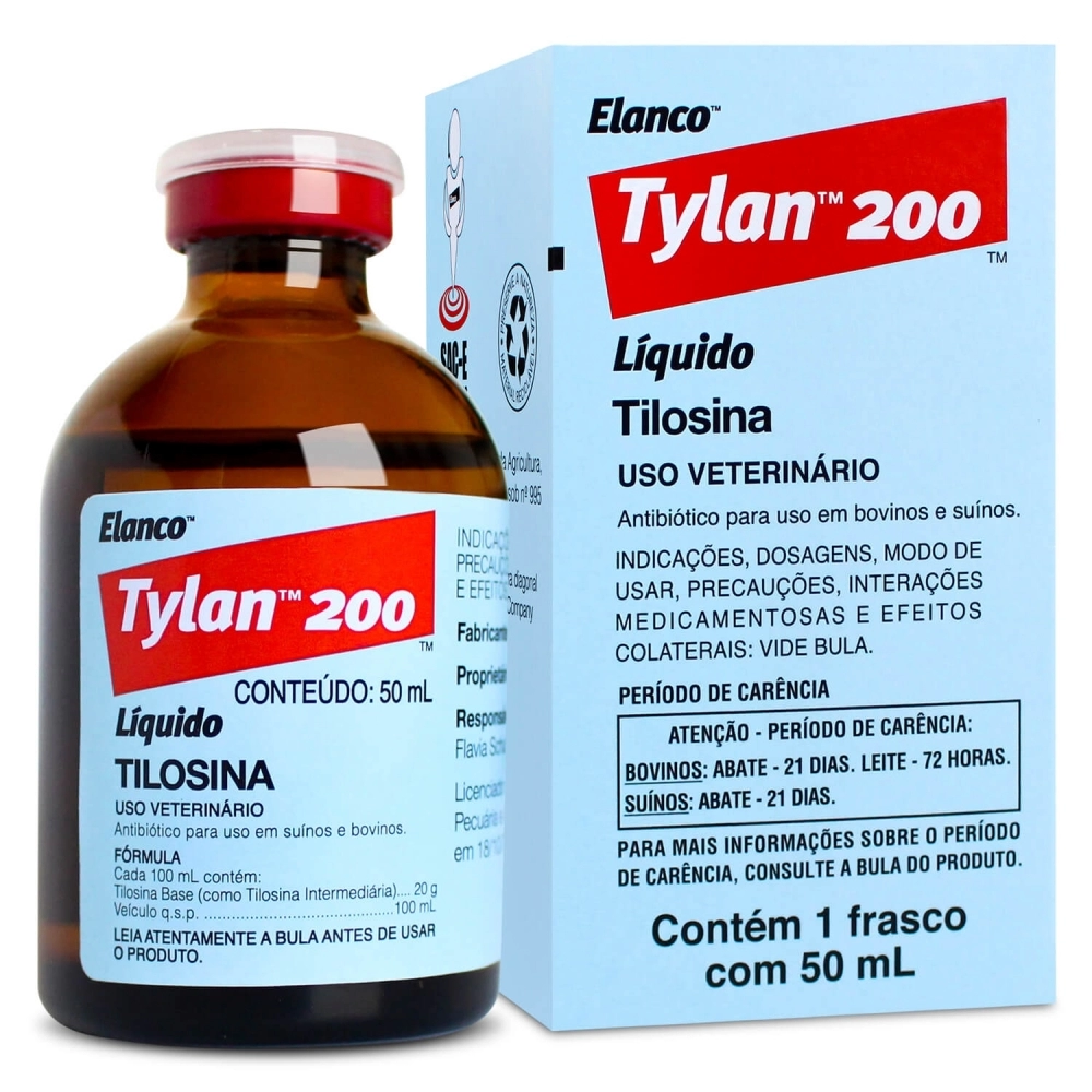 Tylan 200 é um antimicrobiano injetável, com ação eficaz no tratamento de pneumonia, necrose dos cascos, difteria, metrite, mastite aguda, artrite, erisipela, agalaxia contagiosa, pleuropneumonia caprina em bovinos, suínos e ovinos. Possui excelente ação e garante resultado rápido e eficaz.
