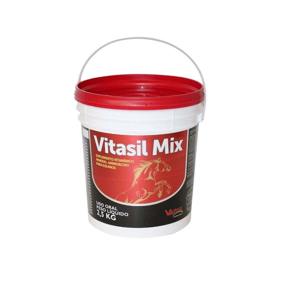 Vitasil Mix é um suplemento vitamínico, mineral e aminoácido para alimentação de equinos. O Suplemente Vitasil Mix é indicado para animais que necessitam de suporte na alimentação.