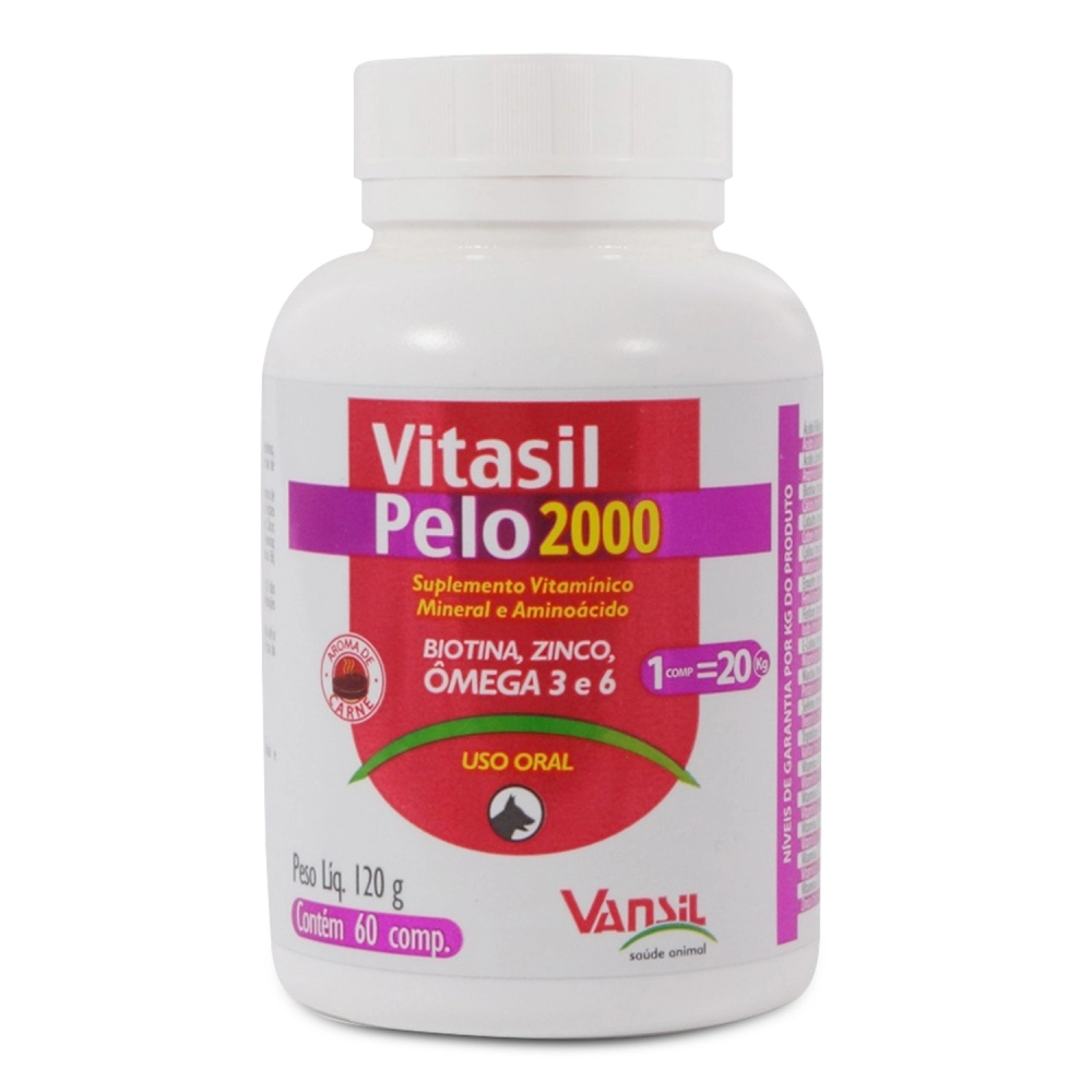Vitasil Pelo possui em sua composição Ácidos Graxos, vitaminas, minerais e aminoácidos, que tem como finalidade suplementar cães e gatos em fase de crescimento e adultos
